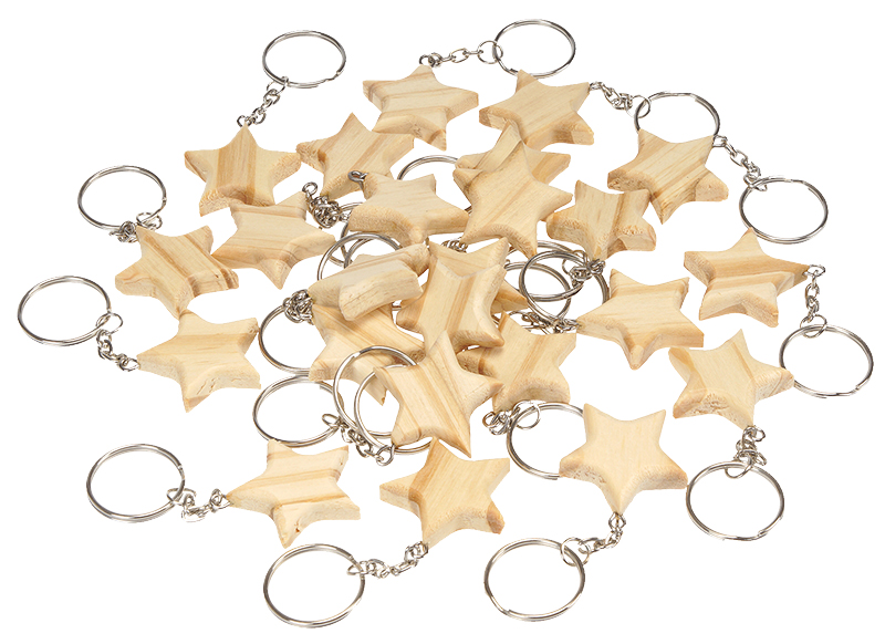 24 houten stersleutelhangers om te decoreren. Ideaal vaderdag- en/of moederdagcadeau.
