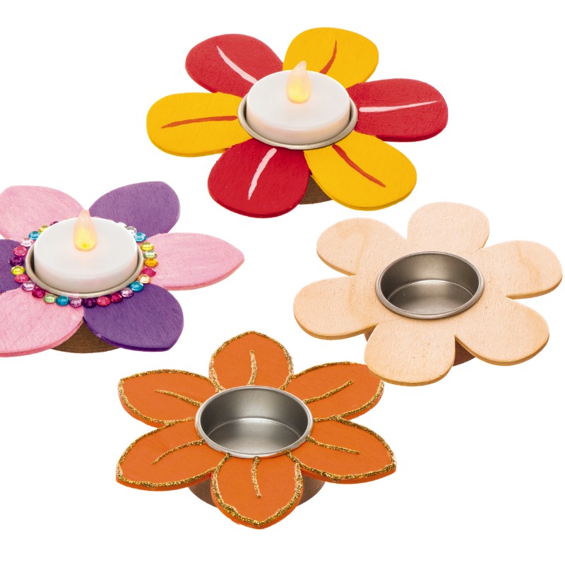 Hout - Kaarsenhouder - Bloem 4st