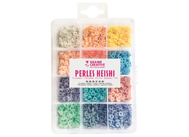 Platte kunststof kraaltjes geven een heel moderne look aan je armbandjes en halssnoeren.