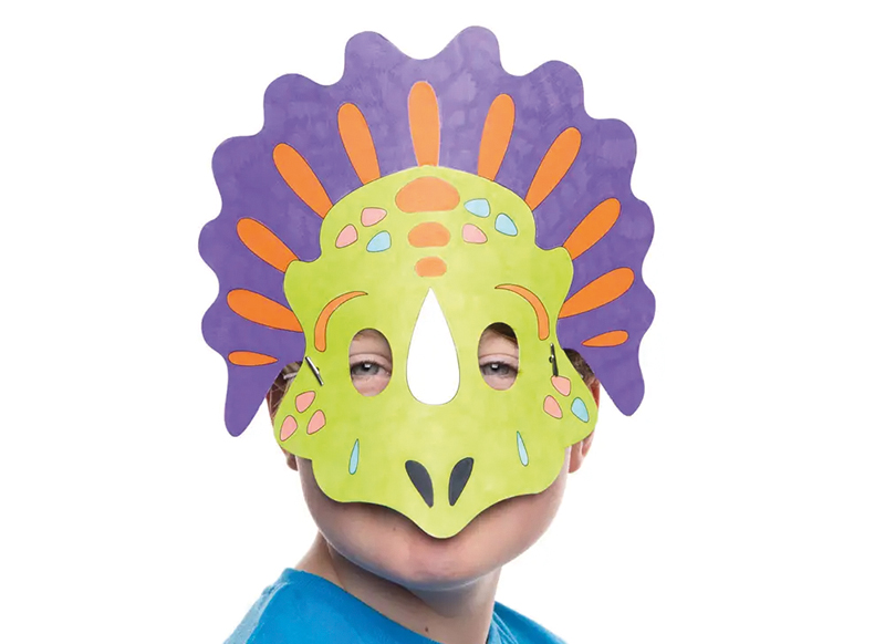 Omschrijving Breng de stegosaurus en de triceratops tot leven en kleur deze maskers in. De meegeleverde elastiek is makkelijk aan te brengen.