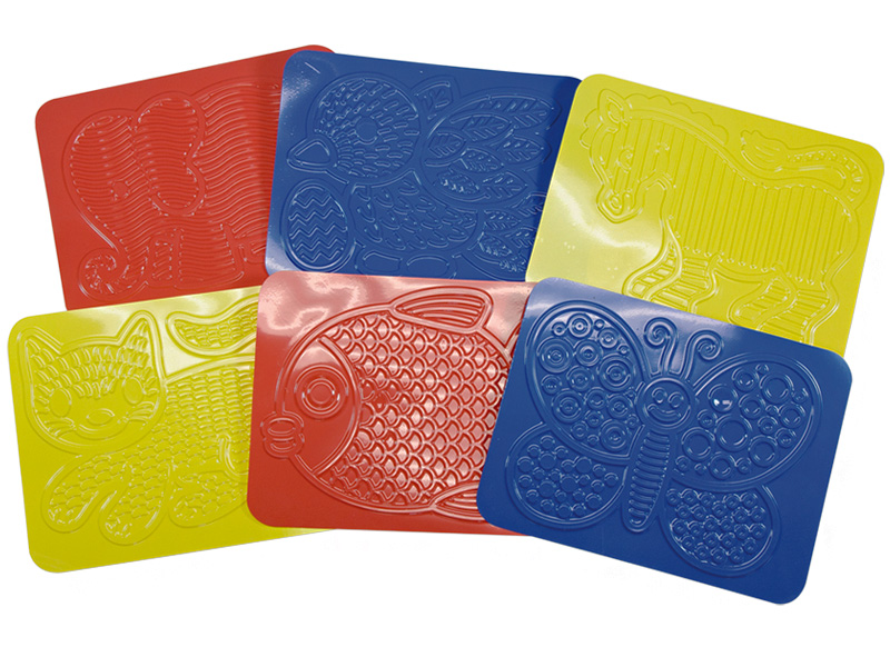 Maak op heel eenvoudige wijze mooie dierentekeningen met deze krasplaten. Plaats een vel papier op de plaat en wrijf met waskrijt over de plaat. Veelvuldig herbruikbaar!