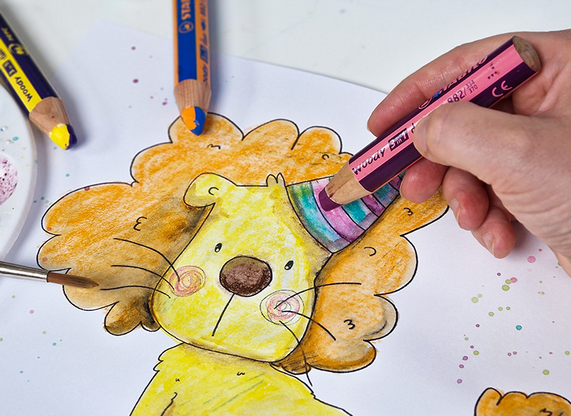 Stabilo Woody 3 in 1 duo is een kleurpotlood, aquarelpotlood en waskrijt in één. Hiermee kun je kleuren op allerlei oppervlakken zoals ramen, broodtrommels, spiegels, krijtborden en natuurlijk papier en karton, etc.. De kleuren van de Woody duo kleurpotloden kunnen ook worden gemengd met water, om er lekker mee te verven.