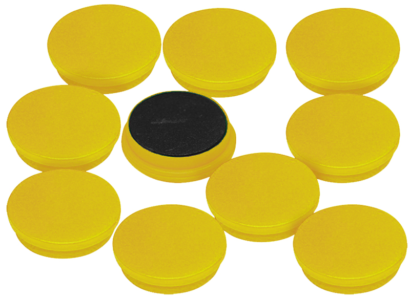 Magneten - 3 cm diameter - geel - set van 10