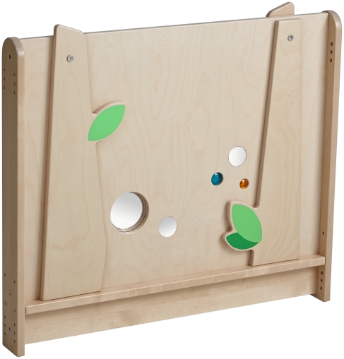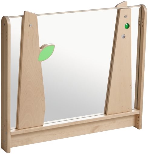 Eén kant met grote, veilige spiegel en aangebrachte boomapplicaties, achterkant met boomapplicaties, aangebrachte prisma's, kleine bolronde en concave spiegels.