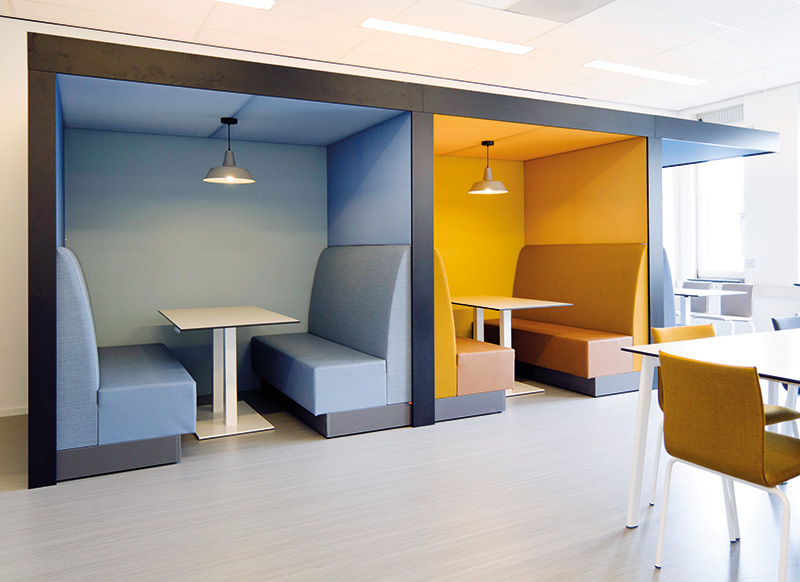 - Door zijn maatwerk past de bank zich aan, aan jouw ruimte. Verschillende banken zijn eenvoudig te koppelen, maar kunnen ook flexibel neergezet worden in de ruimte. Dit kan zowel tegen de wand of vrij in de ruimte