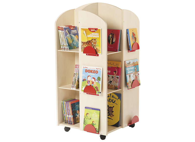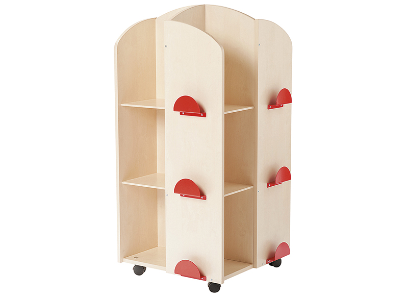 Presenteermeubel voor boekjes. 4 zijden met opberg en presentatie waardoor kinderen in kleine groepjes een keuze uit de verschillende boekjes kunnen maken.