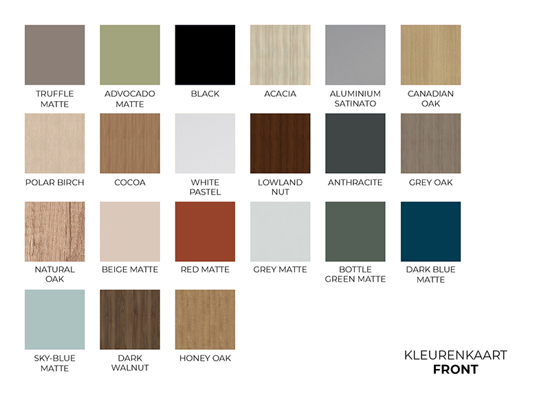Omschrijving Het leuke aan deze lockers is dat je elke kleur zelf kan bepalen. De deurtjes zijn bijvoorbeeld verkrijgbaar in 17 kleuren van standaard grijs tot glossy geel, daarnaast kan elk deurtje een andere kleur krijgen. De zijpanelen kunnen dan weer een andere kleur krijgen, door te gaan voor verschillende kleuren voor corpus, top, ... . De lockers worden standaard geleverd met sleutelslot, digitaal of cijferslot als optie. Met een gleufje van 17 mm voor papieren zodat het een brievenbuskastje wordt.