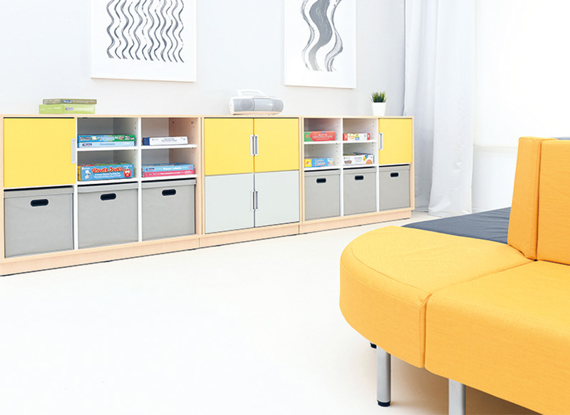 Kast - Basic - Met 4 Planken En 2 Deuren Bovenaan - Esdoorn - Deur Blauw - Per Stuk