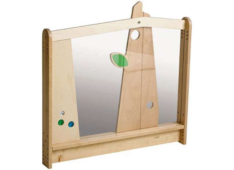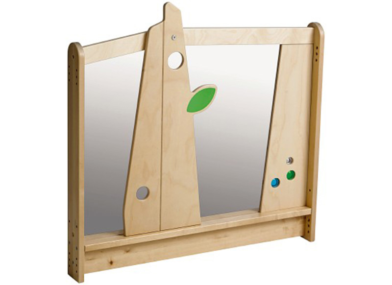 Met kleurrijke prisma's, acrylvlak en boomstamapplicatie met kijkgaten, blad en gefreesde groef om na te trekken.