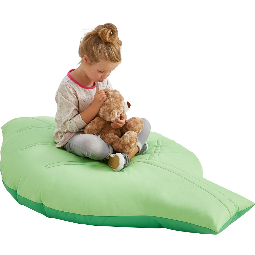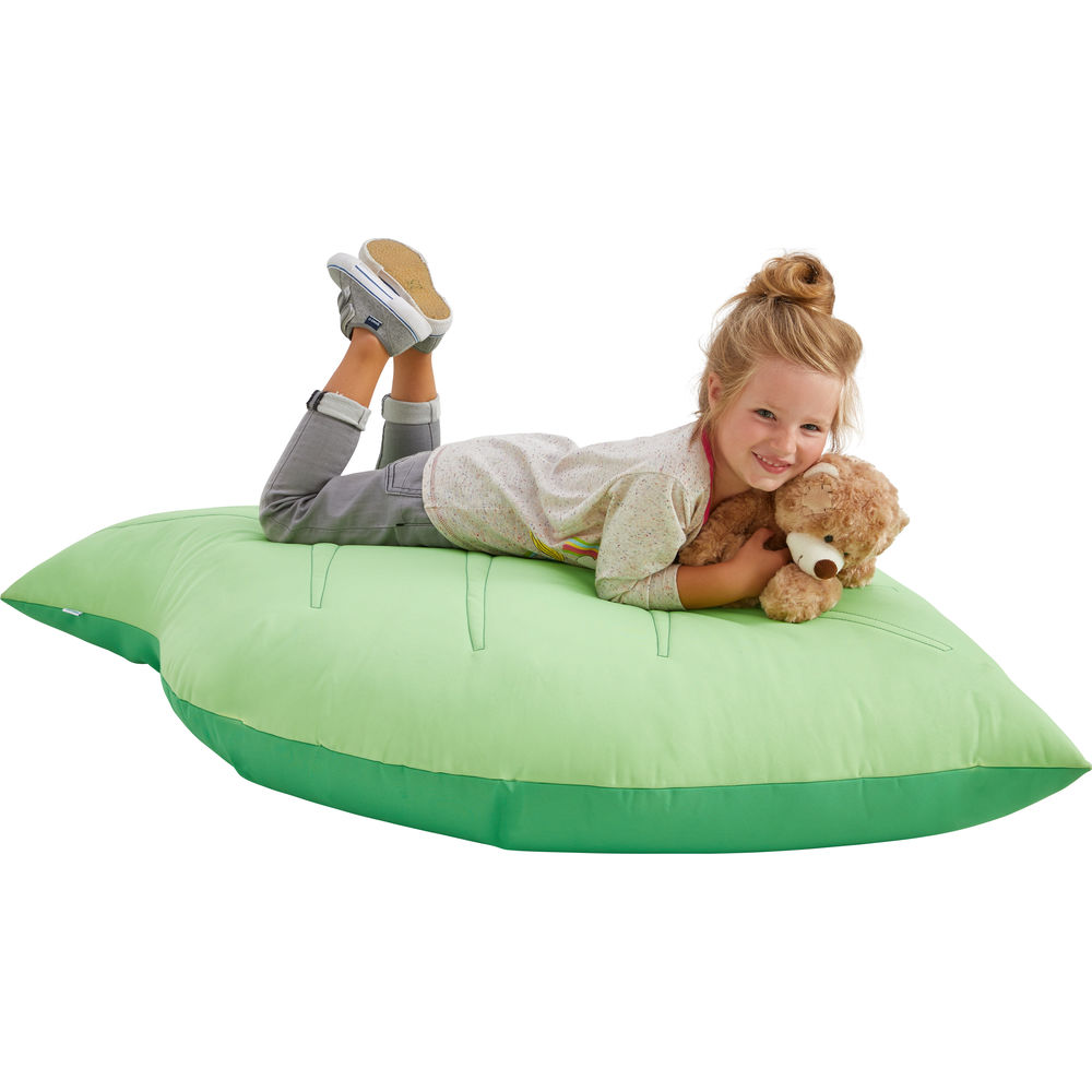 Zitzak in de vorm van een blad. Hierop kunnen kinderen heerlijk lezen, spelen en relaxen.