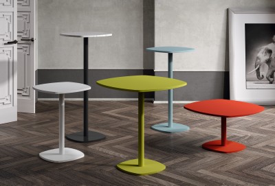 Deze unikleurige tafels passen perfect bij de stoelen ZENITH EN CROSS, maar kunnen ook gecombineerd worden met andere stoelen. Zijn licht afgeronde vorm en het feit dat de poot in dezelfde kleur is als het tafelblad maakt van deze tafel een echte eyecatcher. Blad in HPL.