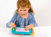 Omschrijving Maak tekeningen of volg de instructies op de stencils. Met een simpele druk op de knop wis je alles schoon. Geschikt voor kinderen vanaf 3 jaar.