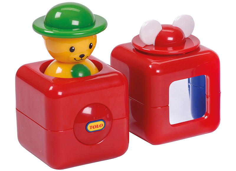 Omschrijving De Tolo Jonge Vriendjes Vier bestaat uit 4 apart gepresenteerde pop-up-figuurtjes in verschillende vormgegeven doosjes, met piepgeluid en duikelfunctie. De omduwbare en rollende elementen hebben een grote speelwaarde.
