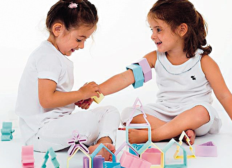 Speelgoed - Dëna Toys - huisje boompje kindje - silicoon - pastel - per set
