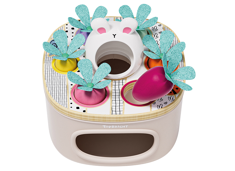Omschrijving Het Topbright wortel-sorteerspel combineert kleurherkenning, motorische vaardigheden en logisch denken in één duurzaam ontwerp! Dit Montessori-geïnspireerde speelgoed bestaat uit een robuuste doos van stevig plastic met een houten deksel, voorzien van gaten in verschillende diepten en breedtes. Elke wortel verschilt in kleur, lengte en dikte, en het is aan het kind om de juiste wortel in het juiste gat te plaatsen. De kleurrijke ringen rond de gaatjes helpen kinderen op weg. In het midden van de doos wacht een schattig konijntje met open mond - klaar om ‘gevoed’ te worden met de wortels! Dit interactieve spel laat jonge kinderen niet alleen kleuren en vormen herkennen, maar ontwikkelt ook de hand-oogcoördinatie en stimuleert logisch denken en fijne motoriek. Het perfecte educatieve speelgoed om spelenderwijs te leren!