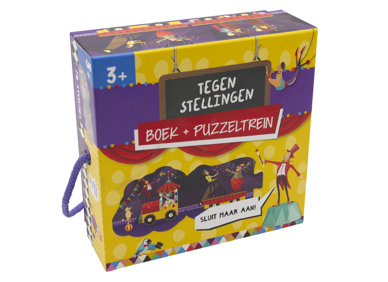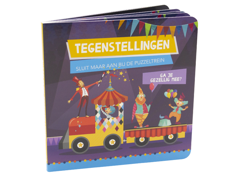 Er gebeurt van alles in de circustrein. Ga je mee? Tijdens het lezen van het boek kom je allerlei tegenstellingen tegen. Groot is niet klein en dik is niet dun. Samen puzzelen en lezen bij de onthaalouder of in de klas is een boost voor de ontwikkeling op verschillende vlakken. Met de puzzeltrein vol tegenstellingen wordt lezen nog leuker.