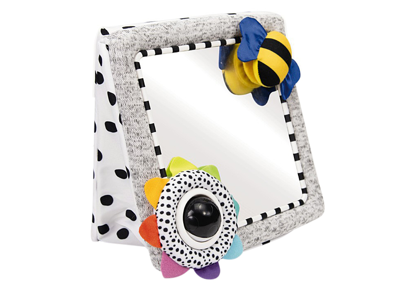 Omschrijving Leuke see me vloerspiegel voor in het park of op de kruipmat. De grote spiegel met ware reflectie zorgt ervoor dat kinderen gefascineerd zijn door zichzelf. Door kinderen naar zichzelf te laten kijken ontwikkelen ze een zelfbewustzijn, wat positief is voor de latere beleving van de eigen identiteit. Deze zachte spiegel met zwart-wit decoratie kan op een veilige manier gebruikt worden op de speelmat of in het park. Daarnaast is de spiegel voorzien van een click & twist bijtje, tracker bal en krakelende bladeren die de zintuigen van het jonge kind extra stimuleren.