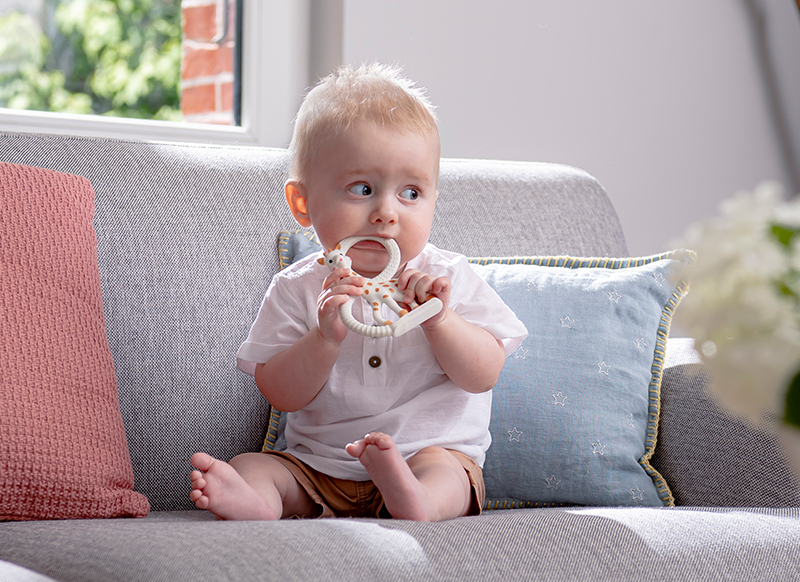 De eerste bijtring gemaakt van hetzelfde natuurlijke rubber als Sophie de Giraf, van de Braziliaanse rubberboom! Ideaal om het pijnlijke tandvlees van baby's te verlichten!