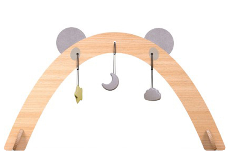 Duurzame houten speelboog met drie speeltjes, stimuleert zintuiglijke ontwikkeling van het jonge kind. Ideaal voor speelhoeken en wachtruimtes.