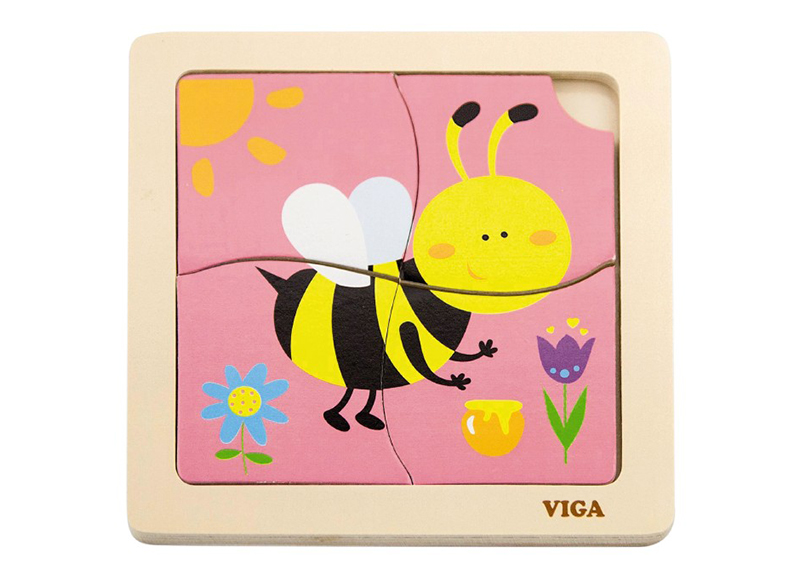 Drie 4-delige houten puzzels met kleurrijke insecten.