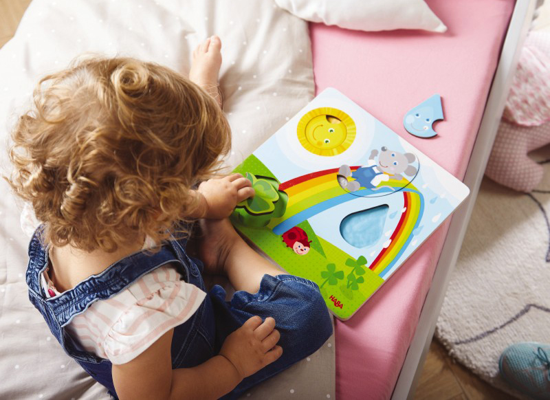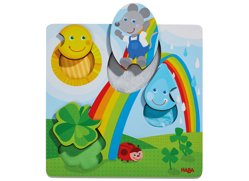 Muis heeft 4 verschillende soorten materialen verstopt onder de puzzelstukken. Met deze Haba voelpuzzel leren de kinderen in de klas, het kinderdagverblijf of de opvang het verschil tussen gladde en ruwe oppervlakken ervaren en herkennen.
