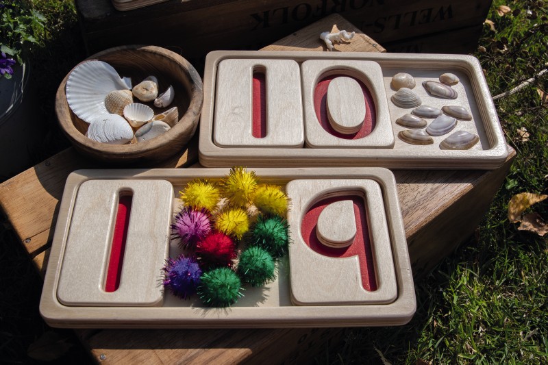 Samenstelling 2 multisensorische borden met 12 cijferbordjes.
