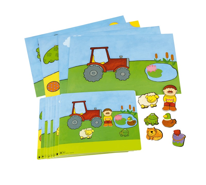 Het spelbord wordt tussen 2 kinderen geplaatst, met aan de ene zijde de opdrachtkaart en aan de andere zijde een blanco landschap. Op basis van de richtlijnen die de kinderen uitwisselen worden de verschillende magnetische vormen op het blanco landschap geplaatst.