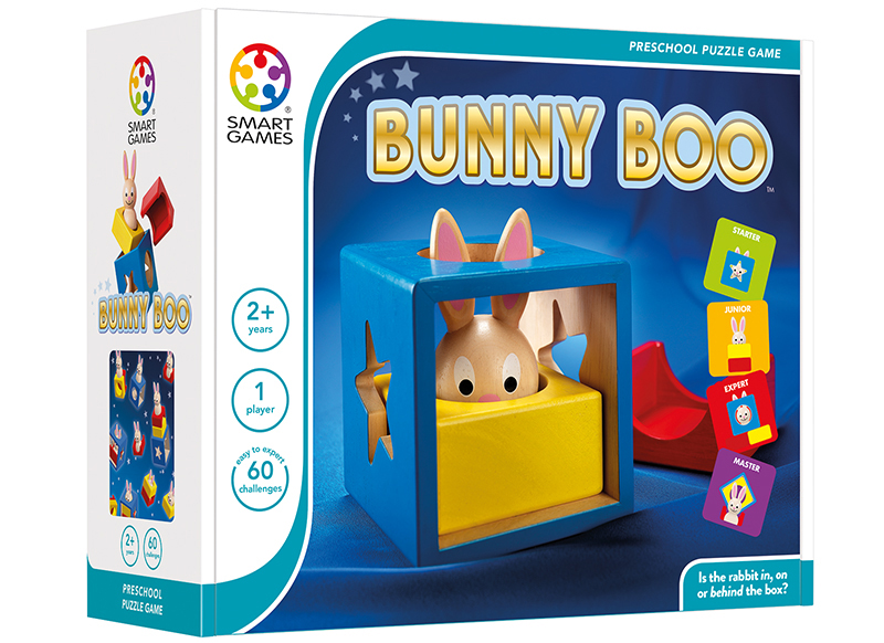 Met de Bunny Boo kunnen jonge kinderen de fascinerende wereld van 2D en 3D-ruimte verkennen. Los de 60 opdrachten op en leer de begrippen zoals boven/onder, binnen/buiten, zichtbaar/verborgen, enz. Kijkt het konijn door het ronde gat of door de ster? Zit het konijn op de gele, rode of blauwe blok? Sommige opdrachten zien er bijna hetzelfde uit, maar laat je niet misleiden, de oplossing kan verrassend anders zijn.