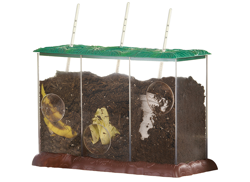 Omschrijving Leer alles over composteren met deze doorzichtige composteerbak! Zie de verschillende fasen van composteren. Ontdek hoe verschillende materialen composteren of niet.