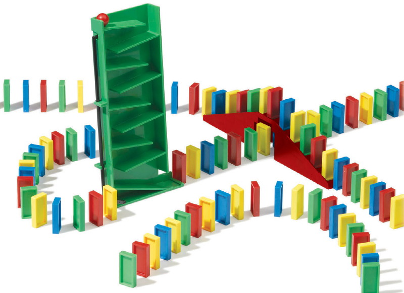 Bouw snelheid op en start een kettingreactie met dominostenen dankzij de slalomtoren van de Domino Express starter lan set.