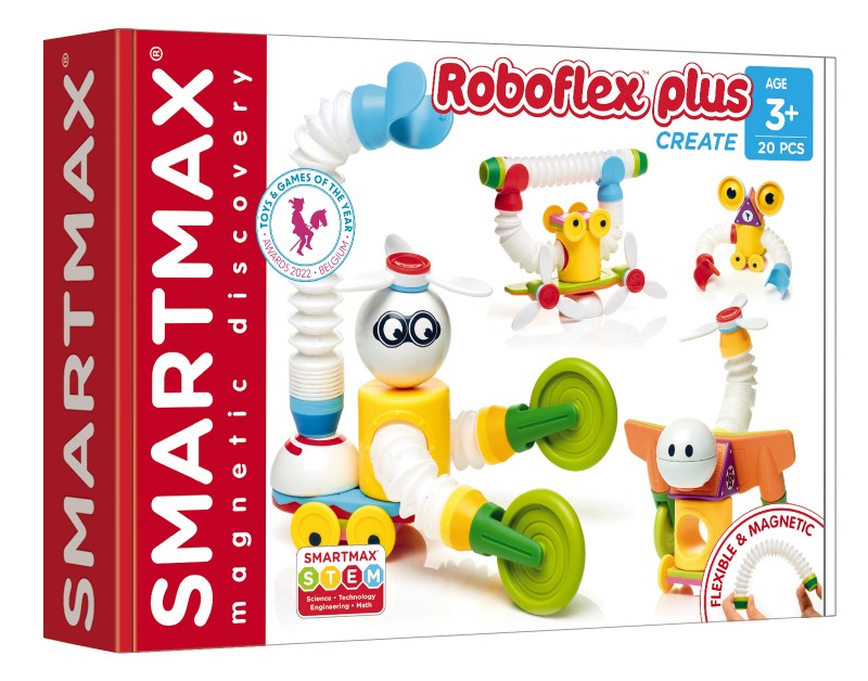 Omschrijving Kies je magnetische onderdelen, buig, rek uit en speel! Vliegt, springt, grijpt, wiebelt of rijdt jouw robot? De 20-delige set helpt de ontwikkeling van fijne motoriek en stimuleert de fantasie. Roboflex Plus werkt met alle andere SmartMax sets samen en kan er zonder problemen mee gecombineerd worden. Wanneer ontmoet jij deze flexibele vriendjes?
