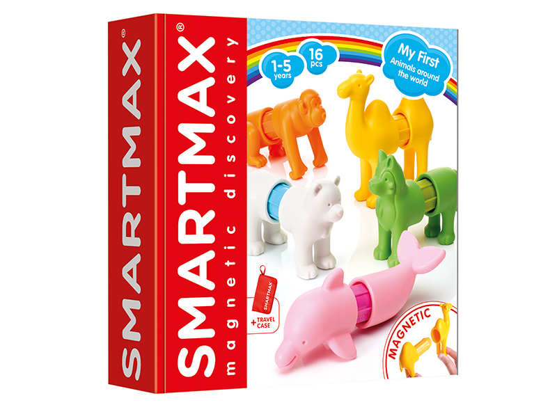 Omschrijving Laat kinderen kennismaken met vijf fascinerende dieren uit verschillende hoeken van de wereld: een dolfijn uit de oceaan, een woestijnkameel, een arctische ijsbeer, een nieuwsgierige aap uit de jungle en een wolf uit het bos. Elk dier bestaat uit kleurrijke, magnetische onderdelen die eenvoudig in elkaar klikken. Mix en match erop los: maak een ijsbeer met een apenkop of een dolfijn met wolvenpoten – alles kan! Dit speelgoed stimuleert de verbeelding, het probleemoplossend denken én de fijne motoriek. Dankzij het gebruik van zachte, veilige en duurzame materialen zijn de onderdelen ideaal voor kleine handjes. De meegeleverde zachte opbergtas met speelse prints maakt het makkelijk om alles op te bergen en mee te nemen. Ontwikkel spelenderwijs vorm- en kleurherkenning, vergroot het wereldbeeld én moedig zelfstandig spel aan. SmartMax combineert magnetische magie met educatief plezier – en dat wereldwijd!