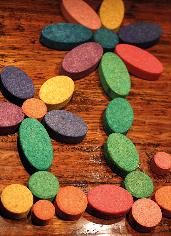KORXX gekleurde kurkblokken in ovale en ronde vormen voor creatief bouwen.
