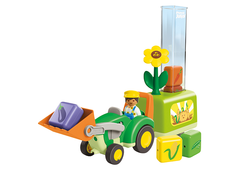 Omschrijving Klaar voor een dagje op het veld? Met deze vrolijke tractor van Playmobil Junior duiken jonge kinderen in de wereld van landbouw en natuur. De robuuste tractor komt met een boer-figuurtje én een laadbak vol kleurrijke groenten die geladen, gelost én geoogst kunnen worden.