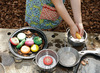 Prettig aanvoelend sensorisch fruit voor gebruik in de buitenkeuken. Kinderen maken hiermee de lekkerste fictieve fruitsalade.