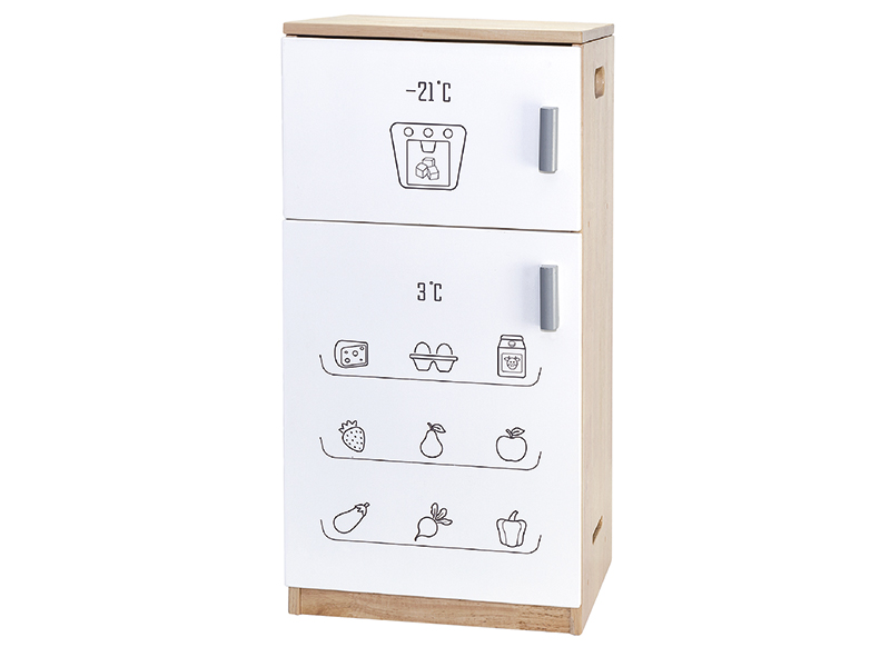 Omschrijving De koelkast is een realistisch en stevig speelmeubel dat niet mag ontbreken in de keukenhoek. Deze houten koelkast heeft twee aparte deuren: een bovenste vriesvak en een onderste koelgedeelte – net als in het echt!