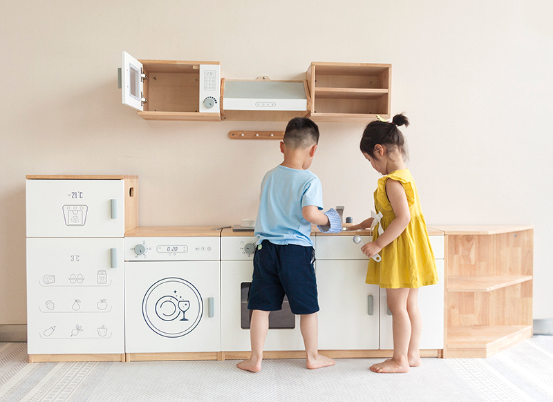 Klaar met eten? Tijd om de vaatwas te vullen! Deze houten vaatwasser maakt de speelkeuken compleet én levensecht.
