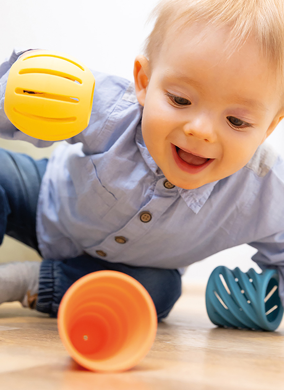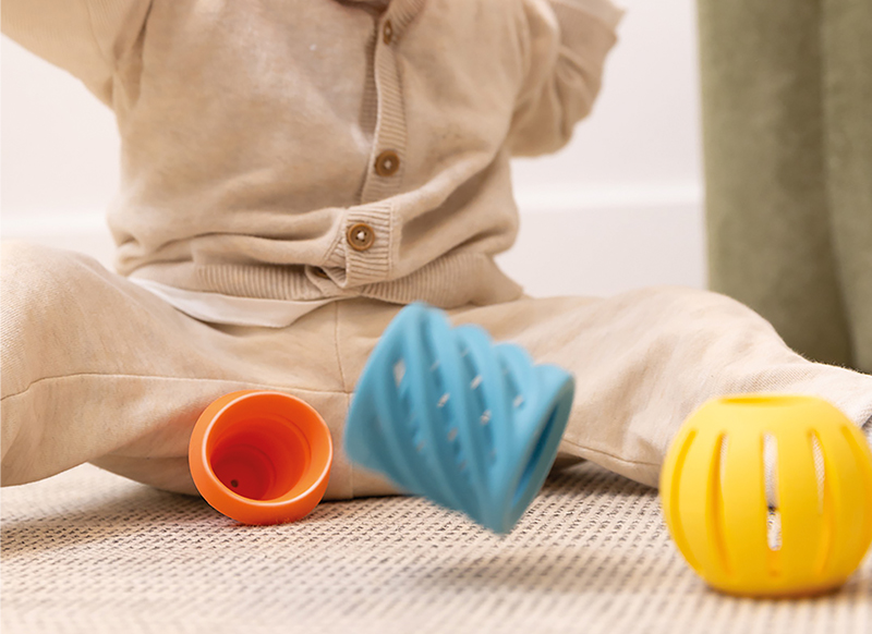 Bijt-, speel- en stapelspeeltje dat tastzin, mondgevoel én fijne motoriek van baby's stimuleert. Ideaal voor sensorische ontwikkeling en motorische groei.
