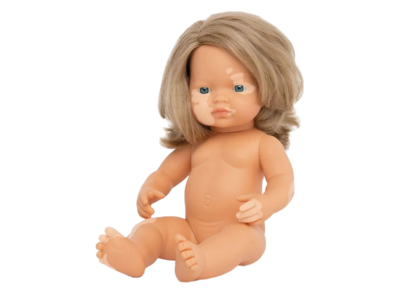 Poppen - Babypop - Miniland - Europees Meisje Met Vitiligo - Huidvlekken - Special Needs - 38 Cm - Per Stuk