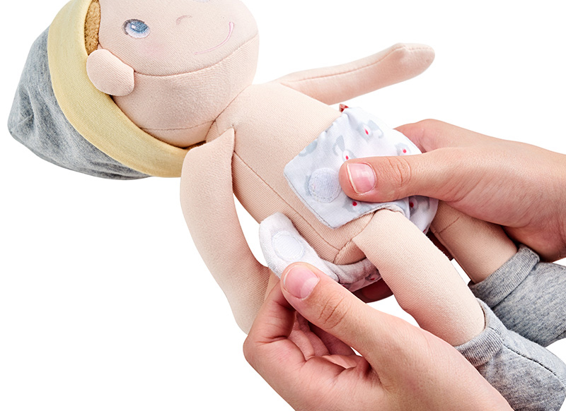 Leer de kinderen in de klas hoe een baby te verzorgen a.d.h.v. deze prachtige babypop Maxime van Haba.
