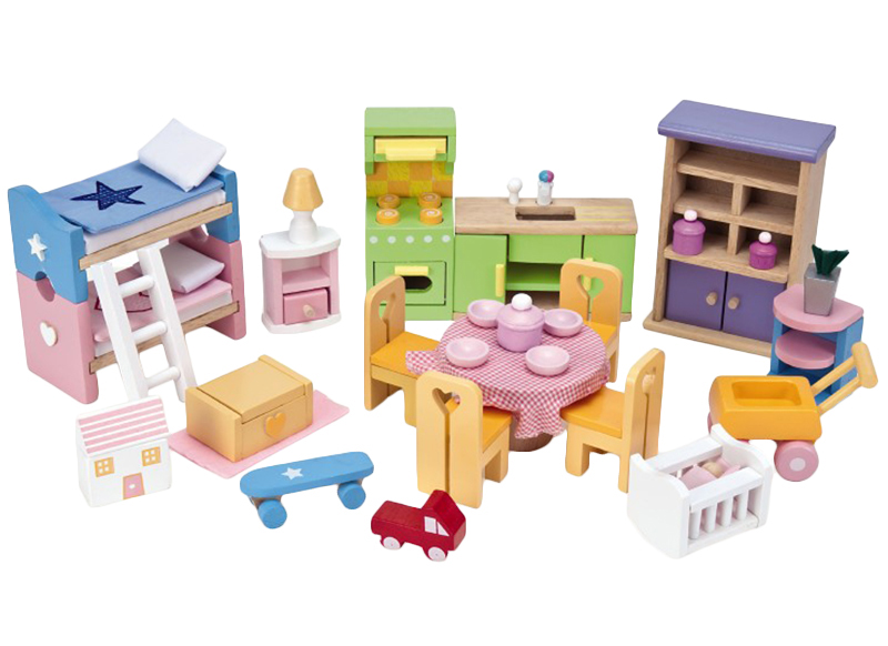 Samenstelling Eetkamer, keuken, kinderkamer, speelgoed en babyuitzet.