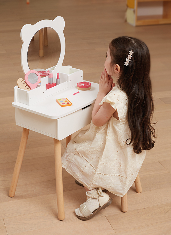 Jonge kinderen vinden het geweldig om een eigen kaptafel met spiegel te hebben, zodat ze zich kunnen verkleden!