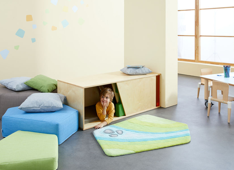 Kenmerken Berkenhout, acrylglas, deur van schuimstof bekleed met kunstleer in de kleur varengroen.