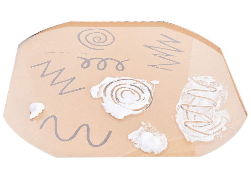 3 mm dik beschrijfbaar plexiglas past perfect in de tuff tray. Plaats opdrachten onder de top en je kan blijven oefenen. Gebruik whiteboard stiften, scheerschuim, …