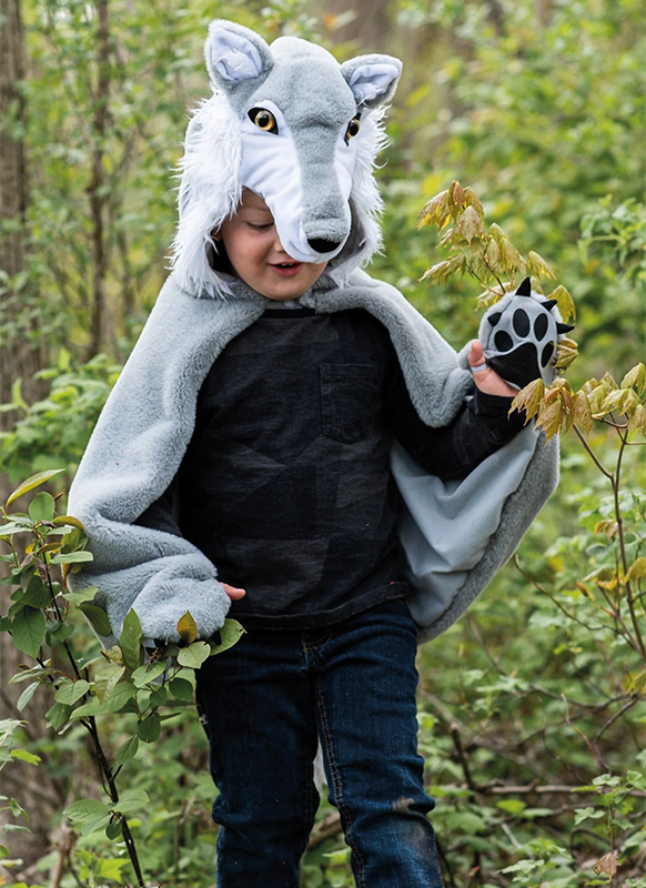 Omschrijving Deze boze wolf verkleedcape is lekker zacht en voorzien van stevig bevestigde oren en manen. Kinderen steken hun handen in de pootjes en gaan onmiddellijk op in hun verhaal! De velcrosluiting maakt het handig voor kinderen om de cape makkelijk zelf aan en uit te doen.