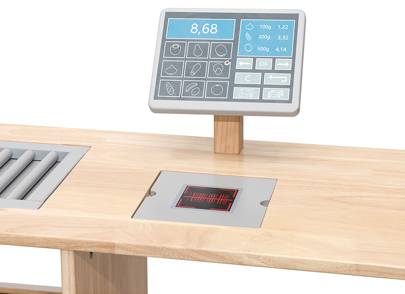 Perfect voor de winkelhoek of thematisch spel. Kinderen kunnen zich afwisselend inleven in de rol van kassamedewerker of klant, wat zorgt voor rijke speelmomenten vol taalontwikkeling, emotioneel inleven en sociaal contact.