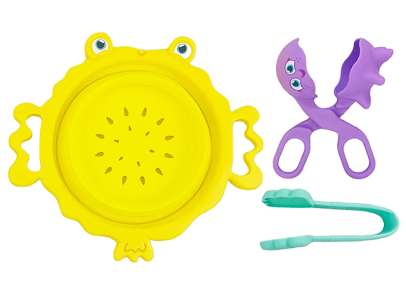 Samenstelling Puffer Pal uitbreidbare zeef, Tiny schelp tang en een 3-in-1 Scooper inktvis!