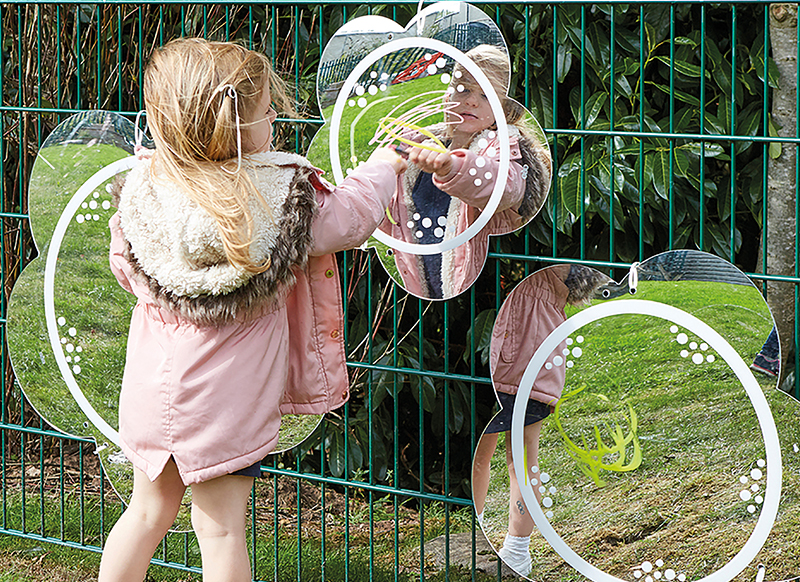 Omschrijving Deze madeliefvormige acrylspiegels fungeren als veelzijdige canvassen die creativiteit en communicatie bevorderen. Ze zijn ideaal voor tekeningen met verf, krijtstiften en andere materialen, en het spiegelende oppervlak stimuleert de fantasie door reflecties van de omgeving en eigen creaties. De duurzame, eenvoudig te reinigen spiegels zijn geschikt voor zowel binnen- als buitengebruik. Voorgeboord en klaar voor montage (bevestigingsmateriaal niet inbegrepen).