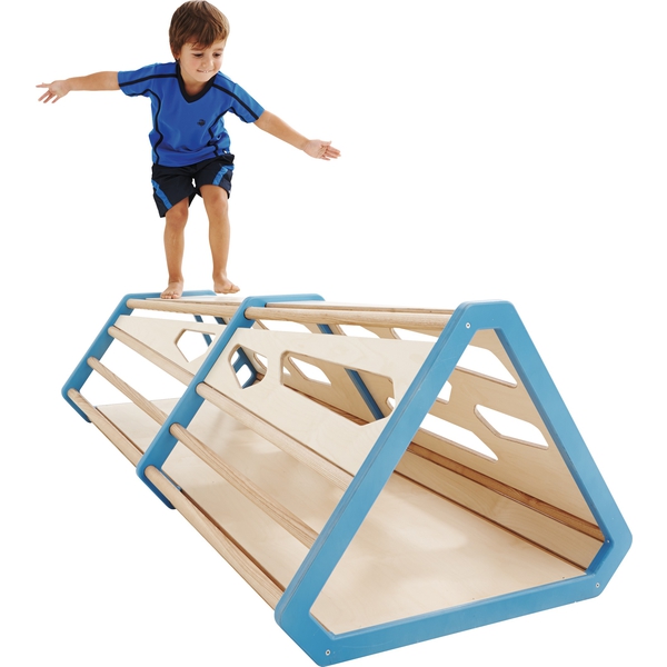 Alpinio bewegingstoestel om te klimmen en te klauteren. Stijgende en smaller wordende balanceeroppervlakten, net zoals in de bergen.