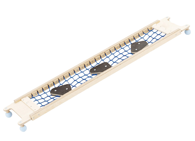 Inhangplank met 3 stapstenen op een net van polypropyleen.